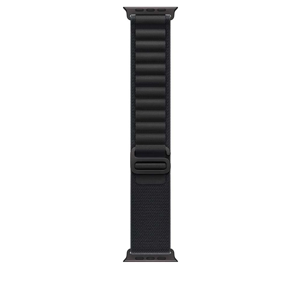 Řemínek Alpský tah k Apple Watch • pevné textilní vrstvy • titanová spona ve tvaru písmene G • spolehlivě drží • velikost pouzdra 49 mm • velikost řemínku Large (na zápěstí s obvodem 165-210 mm) • barva: černá + kovové prvky z černého titanu