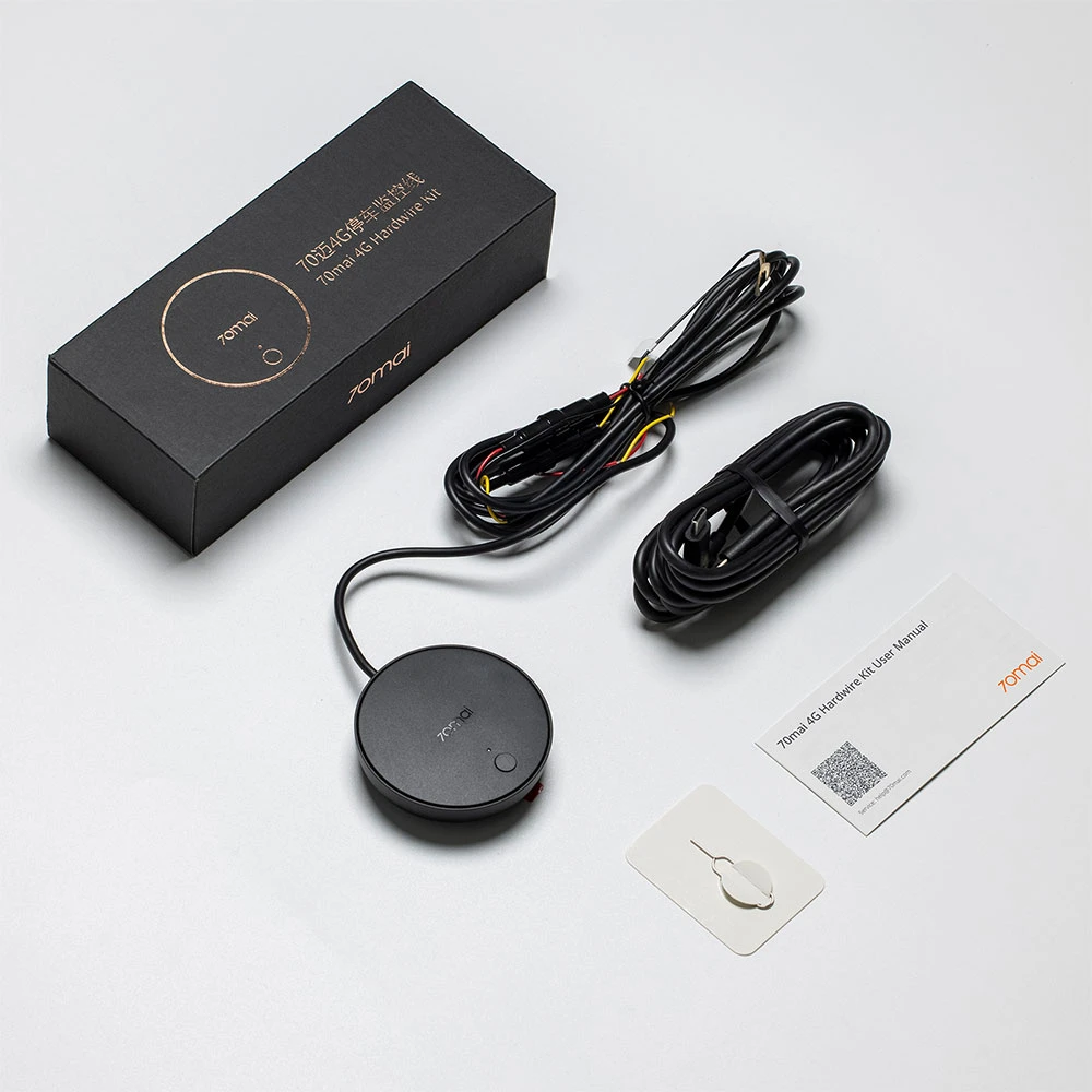 Napájecí a komunikační hardwarový kit pro autokamery 70mai • přidává LTE/4G připojení a online funkce (pomocí SIM) • trvalé napájení 12 V z autobaterie • vzdálený přístup pomocí mobilní aplikace • ochrana autobaterie hlídá napětí aby se baterie nevybila • délka kabelu 3 m • USB-C výstup • vestavěný G-senzor dokáže detekovat náhlé otřesy nebo kolize • barva: černá