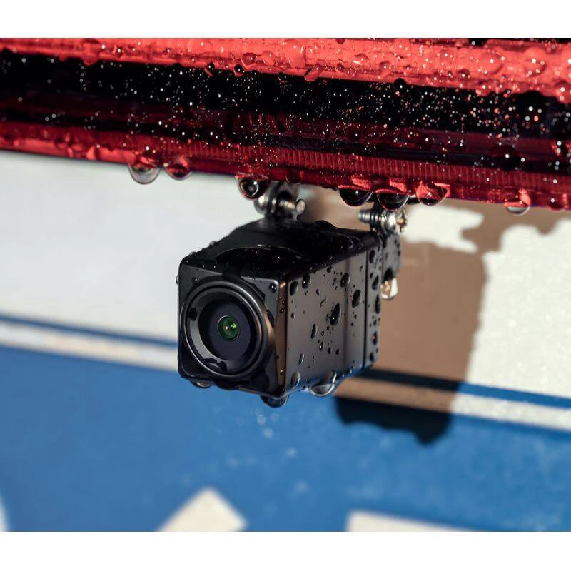Parkovací asistent při zařazení zpátečky na displeji zrcátka automaticky zobrazí obraz ze zadní kamery včetně pomocných naváděcích čar • 138° objektiv minimalizuje mrtvé úhly a spolehlivě zachytí až tři jízdní pruhy • společně s přední kamerou umožňuje nahrávat dění před i za vozem současně (HDR podpora) • voděodolné provedení IP67 zaručuje spolehlivý provoz v každém ročním období • napájení a ukládání záznamů probíhá přímo skrze hlavní jednotku v zrcátku (kabel 5,5 m je součástí balení)