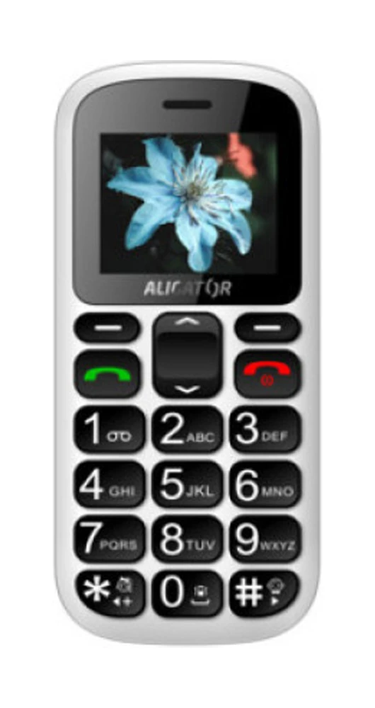 Seniorský tlačítkový telefon s 1,8“ TFT barevným displejem (rozlišení 160 × 128 px) • Podpora MicroSD do 32GB • SOS tlačítko • LED svítilna • FM rádio • Budík • Záznamník • 3,5mm audio jack • MMS • Konektor USB-C • Dual SIM • Vyměnitelná baterie s kapacitou 650 mAh • Nabíjecí stojánek v balení • Barva: bílá