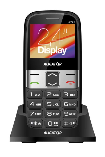 Tlačítkový mobilní telefon s čitelným barevným 2,4" TFT displejem (320 × 240 px) • interní paměť až pro 400 kontaktů a 50 SMS zpráv • podpora microSD/XC karet (až 256GB) • zadní VGA fotoaparát • tísňové tlačítko • SOS lokátor • kalendář • kalkulačka • budík • FM rádio • svítilna • přehrávač hudby a videa • funkce dálkové správy telefonu • Bluetooth 2.1 • GSM • 3.5mm jack • Dual SIM (nano SIM) • 1 700mAh baterie s až 14denní výdrží • včetně nabíjecího stojánku • barva: černá