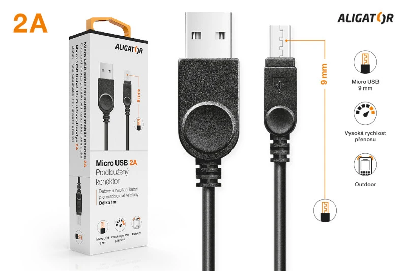 1ks Extra dlouhý microUSB konektor pro nabíjení a synchonizaci dat, délka kabelu 1m, výstupní proud 2A