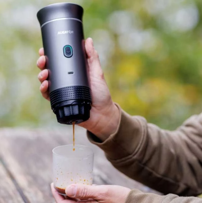 Cestovní nabíjecí kávovar • univerzální využití 3v1: podpora pro kapsle Nespresso, Dolce Gusto a adaptér pro mletou kávu • plně přenosný a bez kabelu • příprava espresso s ohřevem vody nebo bez • až 5 káv s ohřevem vody na jedno nabití • až 40 káv s použitím již horké vody • tlak až 20 barů • jednoduché ovládání jedním tlačítkem • LED indikátor stavu • výkonná vestavěná baterie 7500mAh • USB-C konektor včetně kabelu v balení s možností dobíjení powerbankou • barva: zelená