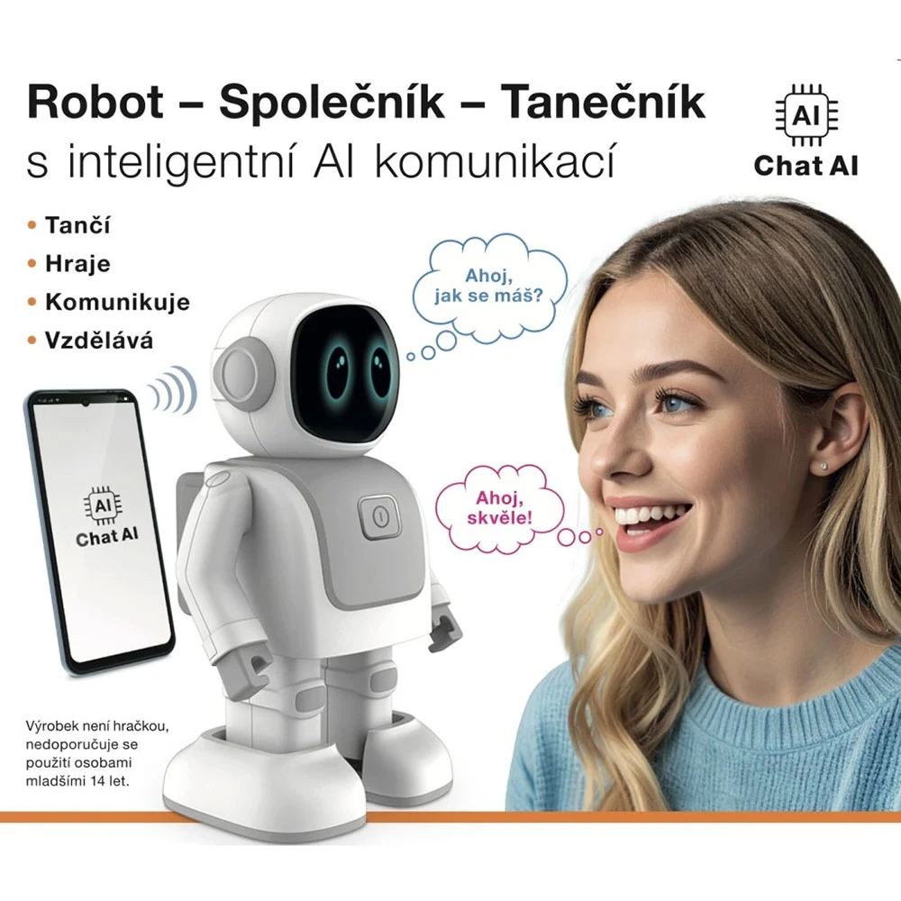 Robotický reproduktor s umělou inteligencí • tančí do rytmu hudby – pohyby robota se díky funkci programování synchronizují se zvukem • AI komunikace – umělá inteligence umožňuje jednoduchou konverzaci a interakci s uživatelem • výkonný 5W reproduktor přináší čistý, vyvážený přednes, výrazné basy a prostorový efekt • slot na microSD kartu • součástí balení je také stylová čepice a šála, které dodají robotovi ještě osobitější vzhled