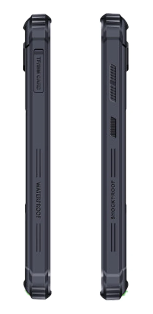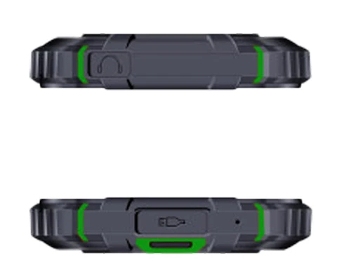 Odolný mobilní telefon • Certifikace IP68/IP69 • 6" IPS displej (480×960px) • Android 13 • Čtyřjádrový procesor ARM Cortex A53 4x2.0GHz • Vnitřní paměť 64GB • RAM 4GB • podpora MicroSD/HC/XC až 1TB • Duální zadní fotoaparát 13MPx + VGA • Přední fotoaparát 5MPx • LTE • Wifi • BT 5.0 • GPS, Galileo, Glonass, Beidou • Hybrid Dual SIM • NFC • USB-C • OTG • Audio Jack 3,5mm • FM Rádio • Snímač otisků prstů • Odemykání obličejem • Baterie 6050 mAh • Barva: černo-zelená