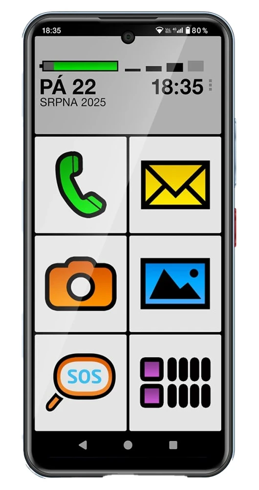 Mobilní telefon s 6,6" HD+ IPS displejem (1600 x 720) • 8jádrový procesor SC9863A • interní paměť 128 GB (slot pro MicroSD kartu až 512GB) • 4 GB RAM (rozšířitelné na 8 GB virtuálně) • Zadní fotoaparát 13 Mpx • přední fotoaparát 8 Mpx • čtečka otisků prstů • 3,5mm Jack • FM rádio • USB-C • LTE • Wi-Fi • Bluetooth 4.2 • Dual Nano-SIM • 4000mAh baterie • Čitelné prostředí Big Launcher • Android 15 • barva: modrá