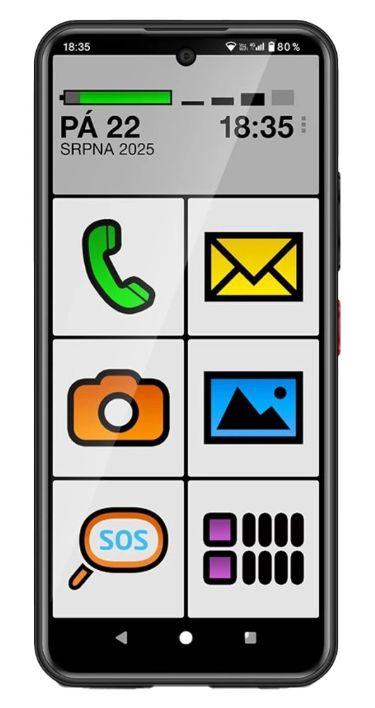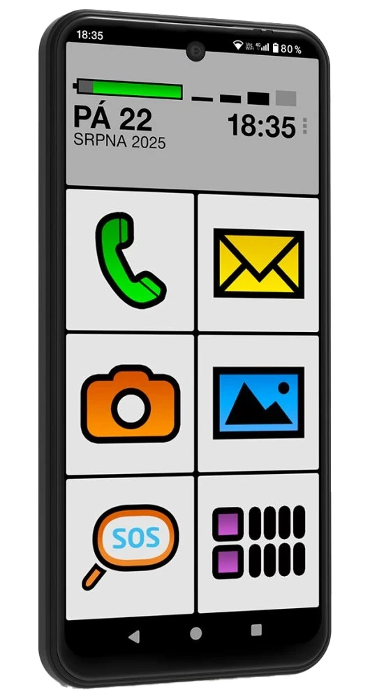 Mobilní telefon s 6,8" HD+ IPS displejem (1600 x 720) • 8jádrový procesor Helio G81 • interní paměť 128 GB (slot pro MicroSD kartu až 1TB) • 4 GB RAM (rozšířitelné na 8 GB virtuálně) • zadní fotoaparát 50 Mpx • přední fotoaparát 8 Mpx • SOS locator • čtečka otisků prstů • 3,5mm Jack • NFC • FM rádio • USB-C • LTE • Wi-Fi • Bluetooth 5.0 • Dual Nano-SIM • 5000mAh baterie • čitelné prostředí Big Launcher • Android 15 • barva: černá