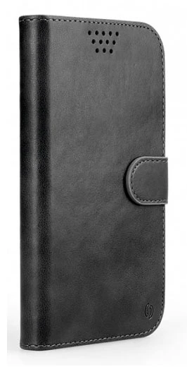 Univerzální pouzdro 160*82*20mm, zavírání pomocí magnetické přezky, přítlačné posuvné čelisti pro uchycení mobilního telefonu, otvory pro reproduktor k pohodlnému vyřizování hovorů. Přihrádky na karty nebo vizitky, kapsa na bankovky, tenké provedení.