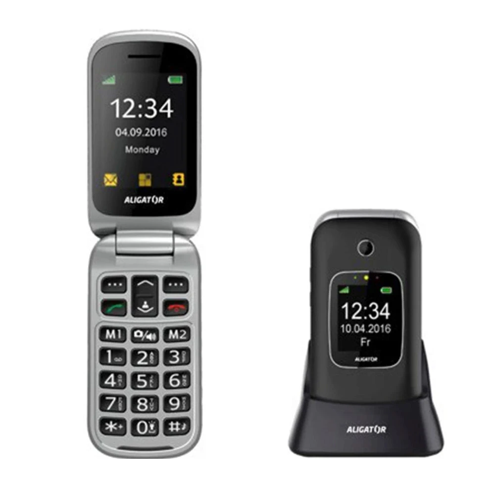 Seniorský tlačítkový otevírací (véčko) telefon s 2,4“ TFT barevným displejem (rozlišení 240 × 320 px) • Druhý 1,44" displej na zadní straně o rozlišení 128 x 128px • Zadní fotoaparát 1,3Mpx • Podpora MicroSD (až 32GB) • SOS tlačítko • LED svítilna • FM rádio • Budík • Záznamník • 3,5mm audio jack • Konektor MicroUSB • Bluetooth • Single SIM • Vyměnitelná baterie s kapacitou 1000 mAh • Nabíjecí stojánek v balení • Barva: černá