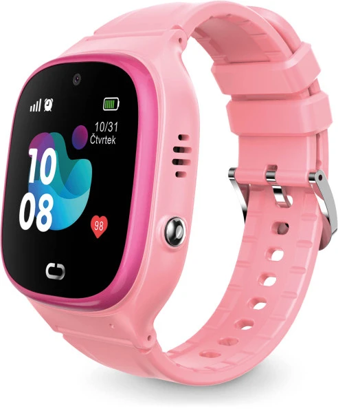 Dětské hodinky s 1,3" IPS displejem • telefonování • GPS • přesná geolokace s bezpečným geofencingem • vzdálené zjištění polohy • historie polohy • Fotoaparát, 0,8 MPx • SOS tlačítko/Volání/SMS/Lokátor • hlasové a textové zprávy • krokoměr • budík • Wi-Fi • BT • IP67 • Nano SIM • kapacita baterie 450mAh • Aplikace pro vzdálenou správu pro iOS a Android • Barva: růžová