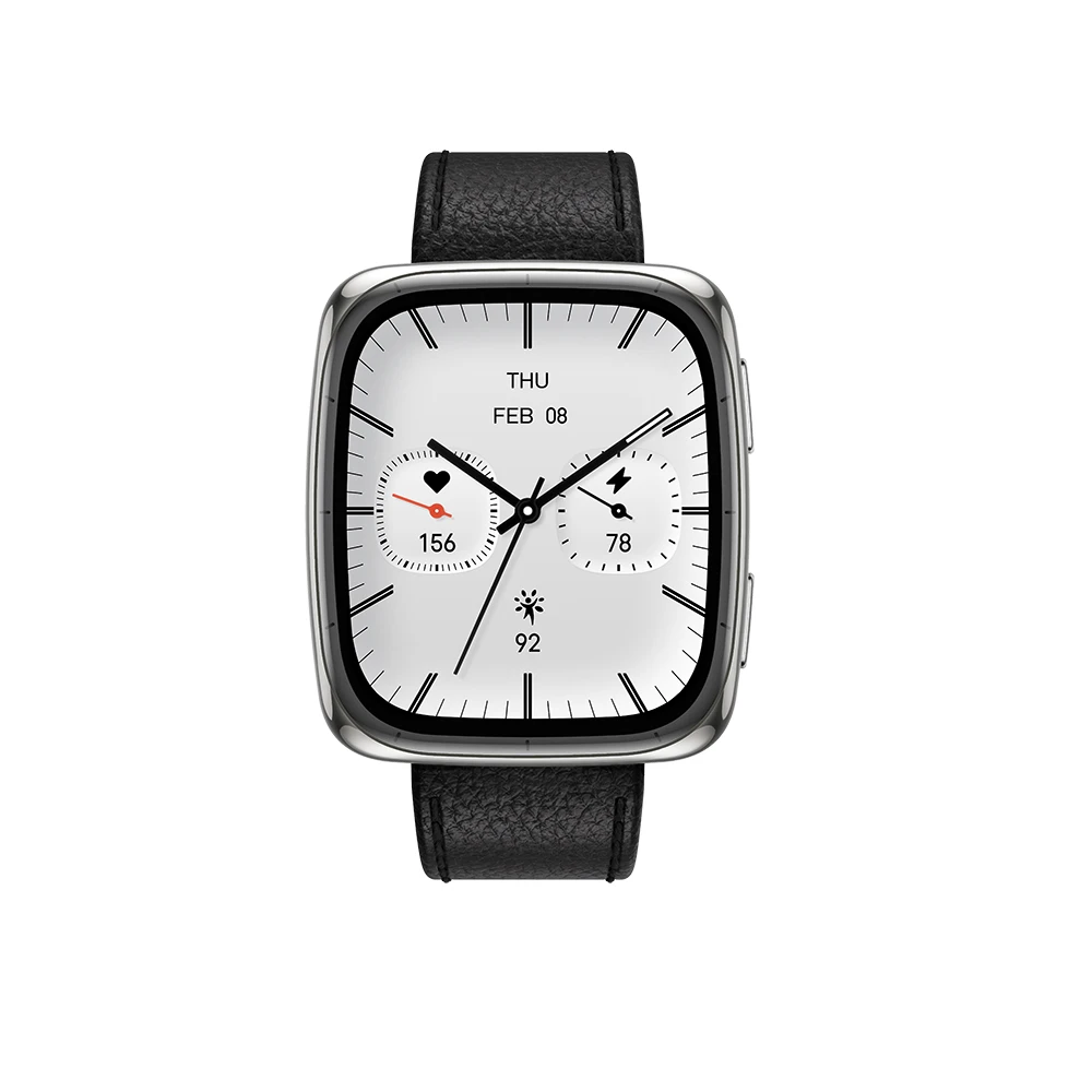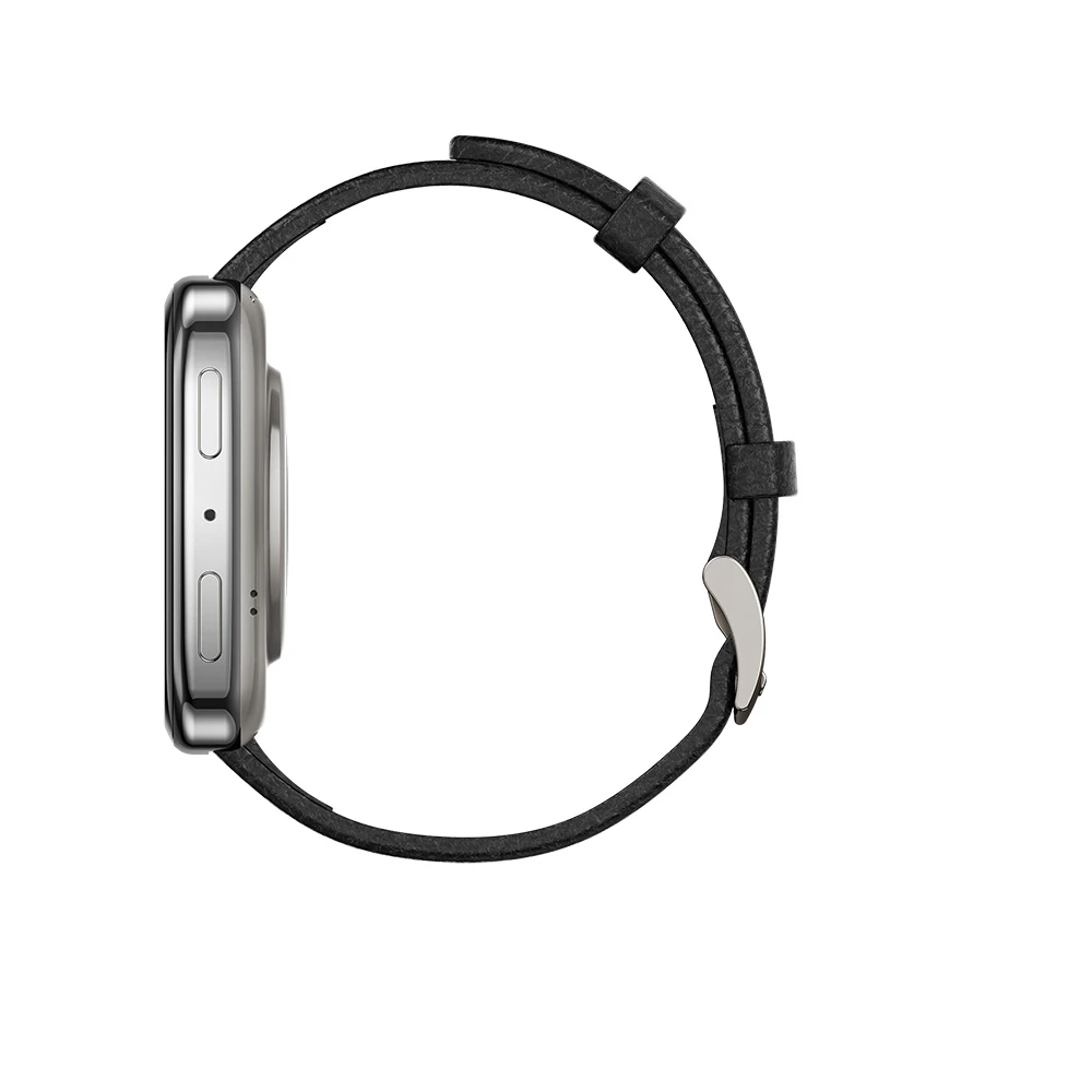 Chytré hodinky s 1,75" AMOLED displejem (390 x 450 px) • rámeček z nerez. oceli • 2.5D tvrzené sklo • dotykové ovládání • 160+ sport. režimů • možnost volání • GPS • výpočet spálených kalorií • krokoměr • pokročilé zdravotní funkce (měření tepu, spánku, stresu, SpO2 • okysličení krve • hudební přehrávač • vibrace • notifikace • ovládání telefonu • NFC • 260 mAh baterie s výdrží až 10 dní • běh • plavání • chůze • vodotěsnost dle 50 m (5 ATM) • Bluetooth 5.2 • pro Android i iOS • kožený řemínek