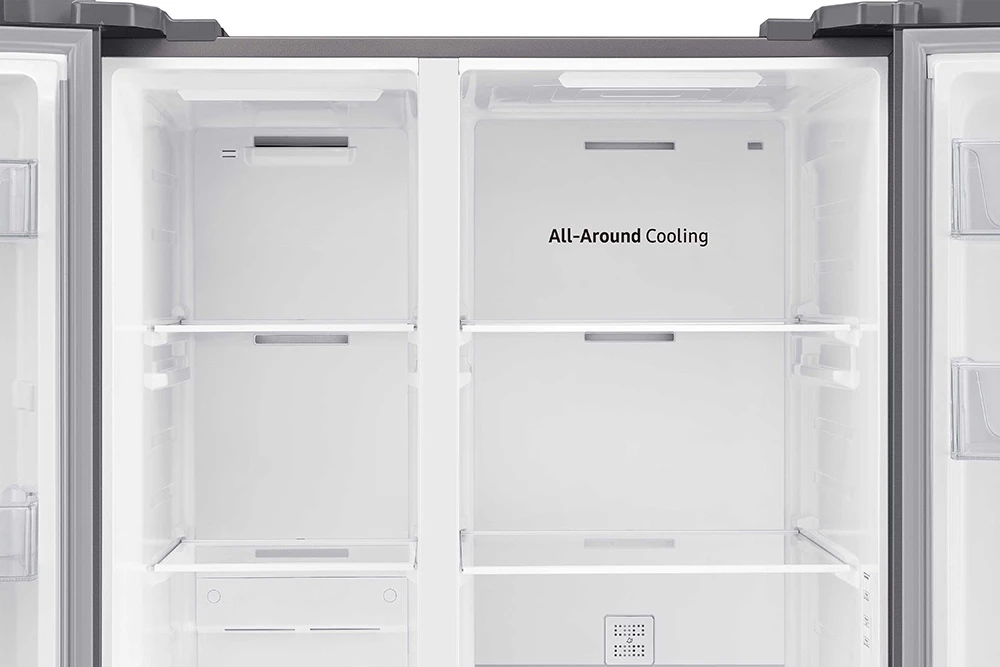 Americká chladnička • en. třída E • objem 655 l (chladnička 418 l; mrazák 237 l) • invertorový kompresor s 20 letou zárukou • vnitřní ovládací displej • výrobník ledu Twist Ice Maker • True No Frost • Mono cooling chlazení • rychlé funkce Power Cool a Power Freeze • výrobník ledu • LED osvětlení • aplikace SmartThings a SmartThings Home Care • režim AI Energy