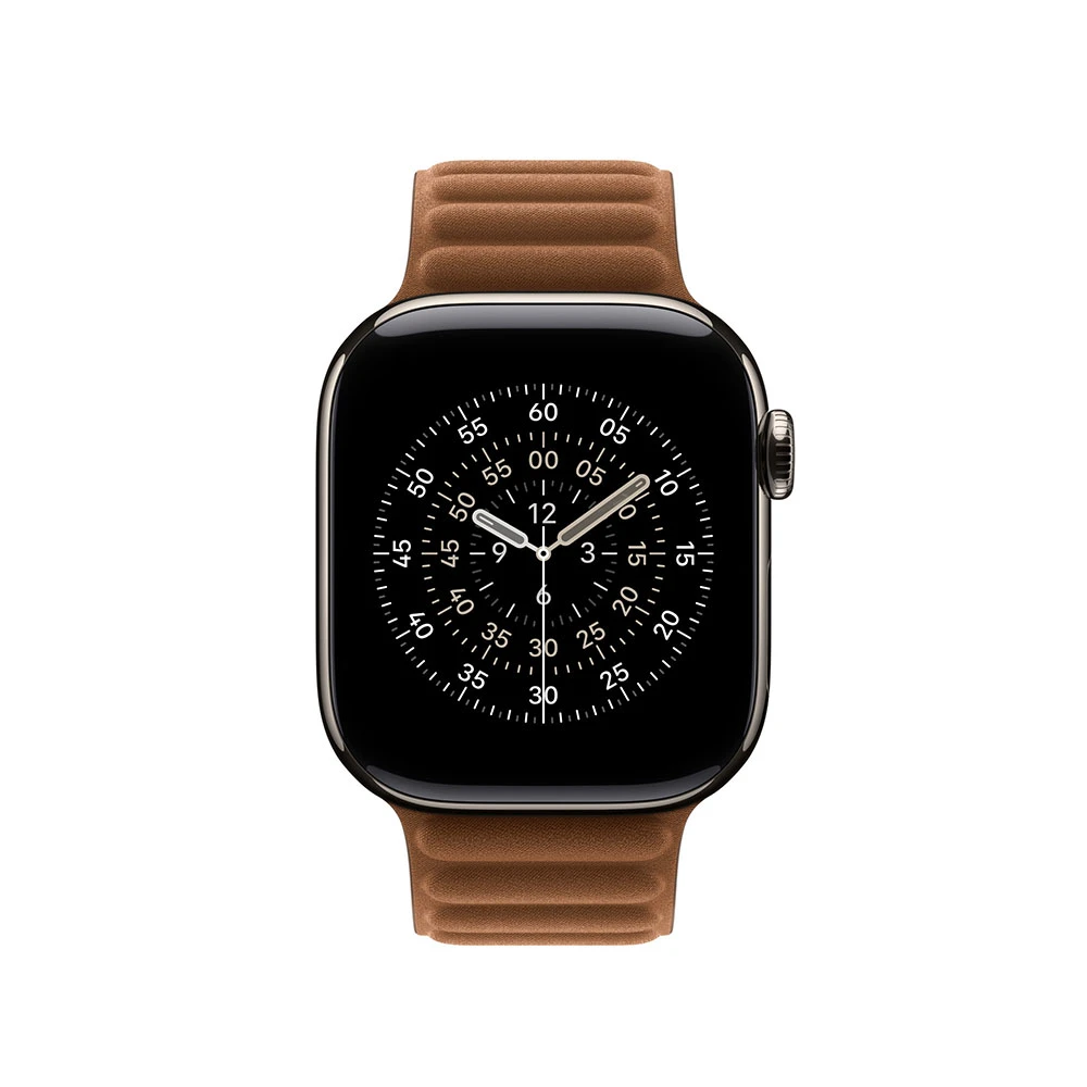 Řemínek magnetický tah • tkanina FineWoven • na dotek jako měkký semiš • zapínání na zalisované magnety • pevně drží celý den a zároveň se pohodlně nosí • velikost pouzdra: 42mm • velikost řemínku: M/L (na zápěstí s obvodem 140-180 mm) • barva: karamelová