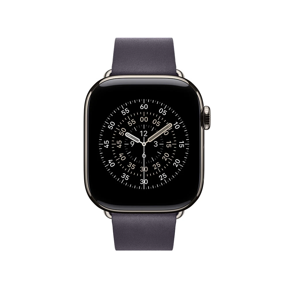 Řemínek pro Apple Watch s přezkou • tkanina FineWoven z odolného mikrokepru • na dotek působí jako měkký semiš • přezka je dvoudílné magnetické zapínání • velikost pouzdra: 42 mm • velikost řemínku: Small (na zápěstí s obvodem 135 - 150 mm) • barva: půlnočně fialová