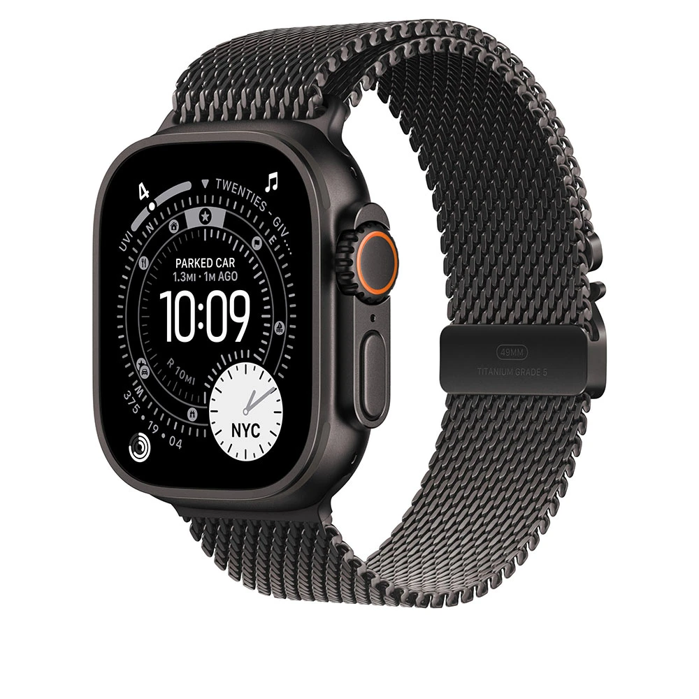 Řemínek milánský tah z černého titanu • recyklovaný letecký titan • bezpečná zacvakávací přezka • vhodný i pro potápění v moři • velikost pouzdra: 49 mm • velikost náramku: Small (na zápěstí s obvodem 130 - 160 mm) • barva: černý titan
