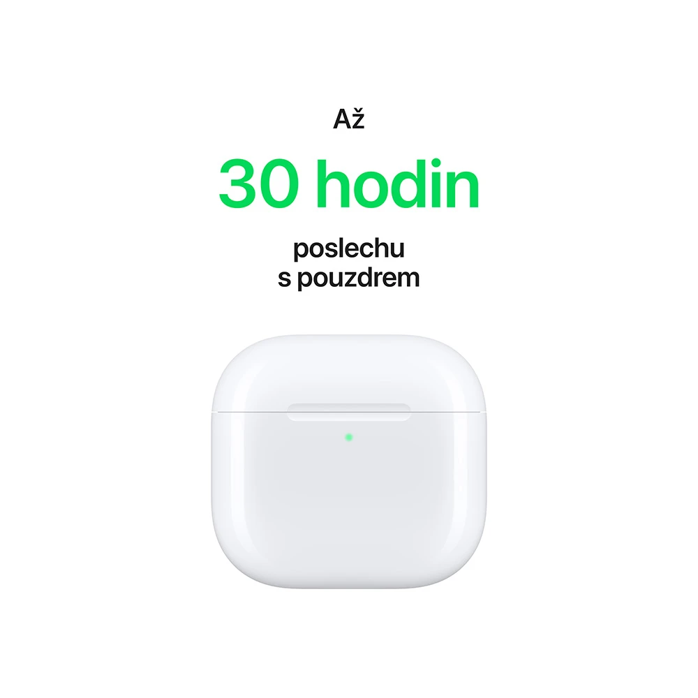 AirPods 4 • speciální budič Apple s vysoce pohyblivou membránou • speciální zesilovač s vysokým dynamickým rozsahem • aktivní potlačování hluku • adaptivní zvuk • režim propustnosti • detekce konverzací • personalizovaný prostorový zvuk s dynamickým snímáním polohy hlavy • adaptivní ekvalizace • čip H2 • 2 mikrofony s funkcí formování paprsku • IP54 • Bluetooth 5.3 • až 4 hodiny poslechu na jedno nabití (až 20 hodin s pouzdrem)