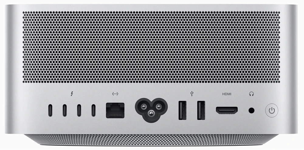 Mac Studio • Apple M2 Ultra (24jádrové CPU s 16 výkonnostními a 8 úspornými jádry, 60jádrové GPU, 32jádrový Neural Engine, propustnost paměti 800 GB/s) • 64GB RAM • 1TB SSD • podpora současného připojení až osmi displejů • 6× Thunderbolt 4 • DisplayPort • USB 4 • USB 3.1 Gen 2 • 2× USB-A • HDMI • 10GB ethernet • 3.5mm konektor • SDXC slot • integrovaný reproduktor • Wi-Fi 6E • Bluetooth 5.3 • macOS