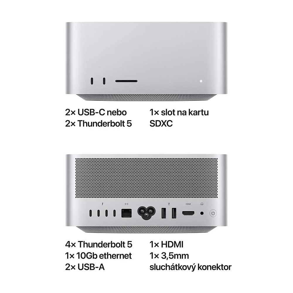Počítač Apple Mac Studio M3 Ultra 28-CPU/60-GPU/96GB/1TB • kompaktní rozměry 19,7 × 19,7 × 9,5 cm • pokročilý systém chlazení • Wi-Fi 6E • Bluetooth 5.3 • slot na microSDXC karty a na externí PCIe karty • vepředu porty: 2× USB‑C nebo 2× Thunderbolt 5, 1× SDXC • porty vzadu: 4× Thunderbolt 5, 1× 10Gb ethernet, 2× USB‑A, 1× HDMI, 1× 3,5mm sluchátkový konektor • možnost připojit až 8 monitorů • macOs • funkce Apple Intelligence