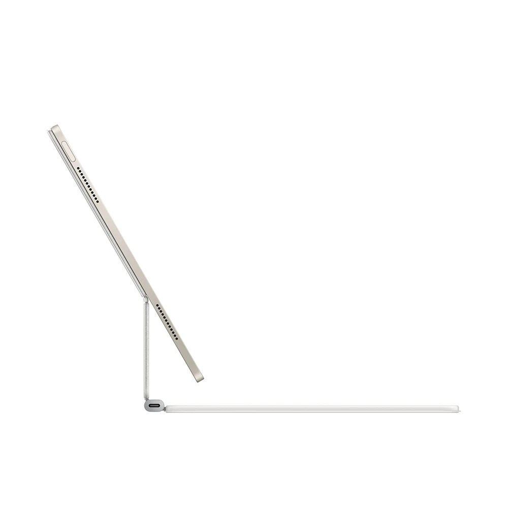 Klávesnice Apple Magic Keyboard pro 13" iPad Air M3 • elegantní nový design s integrovanou baterií • zdokonalené klávesy • vylepšený nůžkový mechanismus pro větší stabilitu a optimalizovaný pohyb jednotlivých kláves • řádek 14 funkčních kláves umožňuje pohotově ovládat jas, hlasitost a další funkce • velký skleněný trackpad • podpora Multi-Touch gest a kurzoru v iPadOS • USB‑C konektor na nabíjení iPadu Air • zavřené pouzdro chrání iPad • slovenská lokalizace kláves • barva: bílá