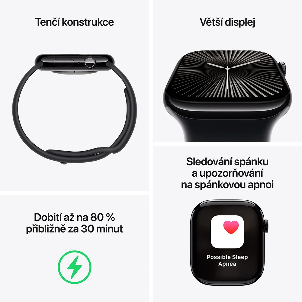 • Apple Watch Series 10 • Řemínek • Magnetická rychlonabíječka Apple Watch s USB‑C kabelem (1m) •