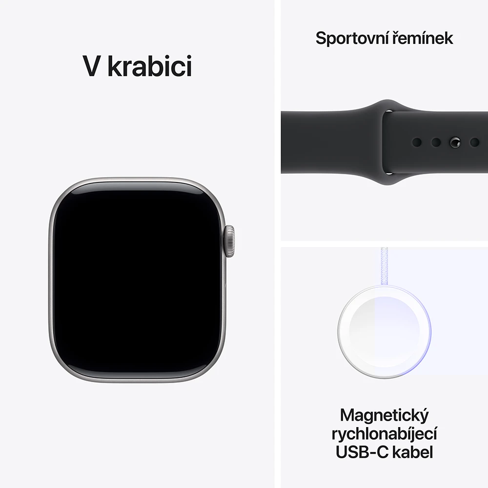 • Apple Watch Series 11 • Řemínek • Magnetická rychlonabíječka Apple Watch s USB‑C kabelem (1m) •