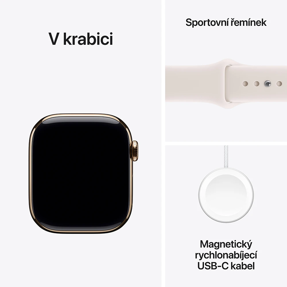 • Apple Watch Series 11 • Řemínek • Magnetická rychlonabíječka Apple Watch s USB‑C kabelem (1m) •