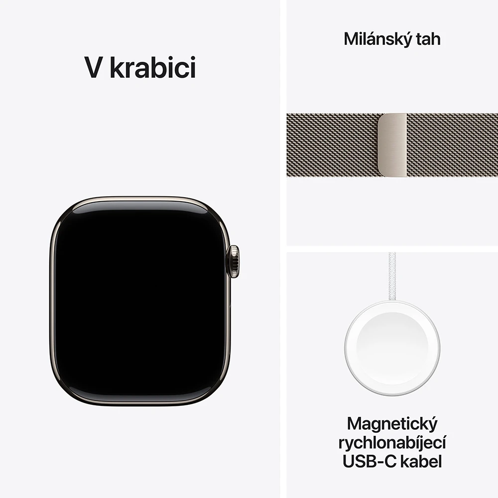 • Apple Watch Series 11 • Řemínek • Magnetická rychlonabíječka Apple Watch s USB‑C kabelem (1m) •