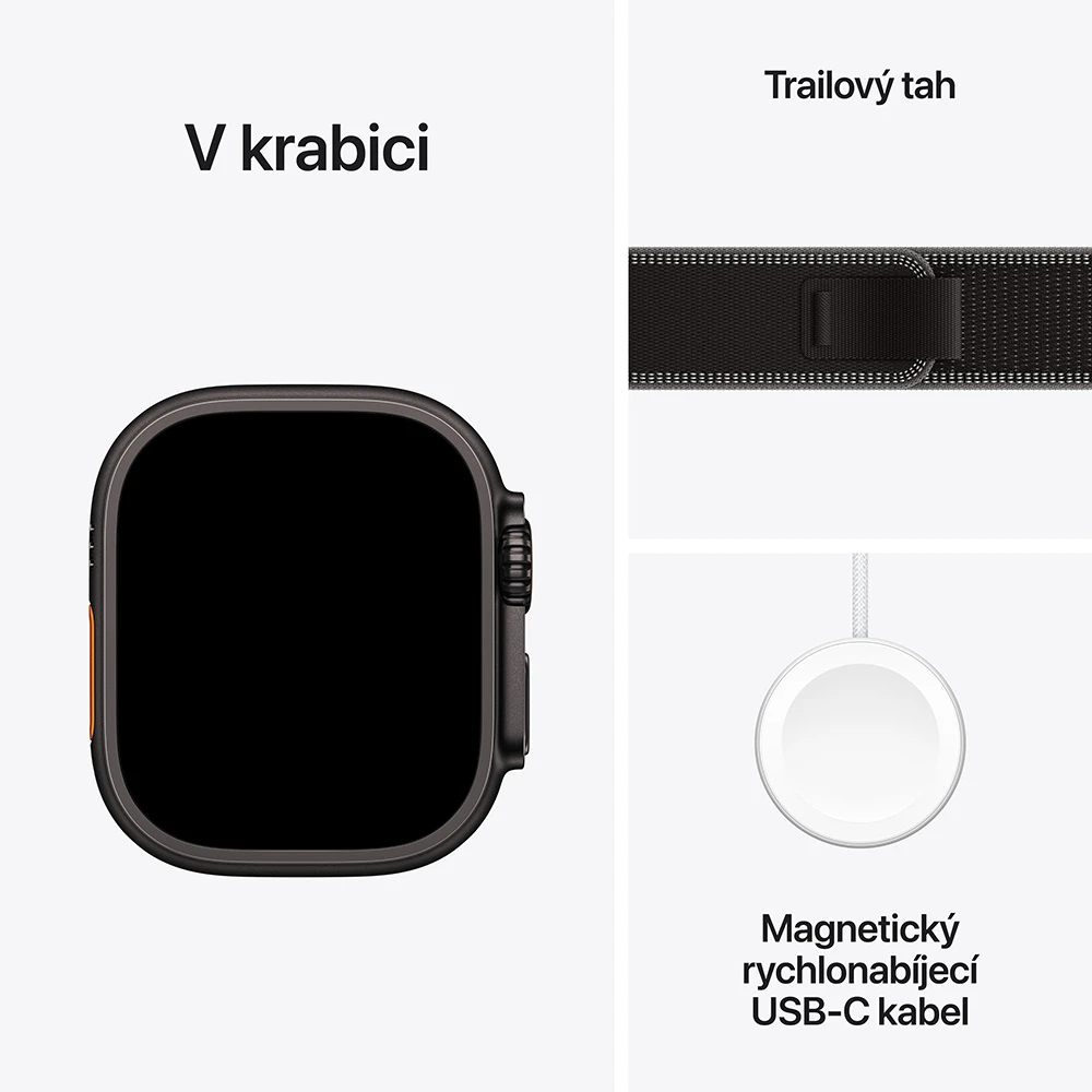 • Apple Watch Ultra 3 • Řemínek • Magnetická rychlonabíječka Apple Watch s USB‑C kabelem (1m) •