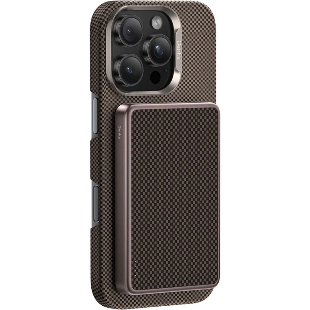 Powerbanka Benks ArmorGo s MagSafe • kapacita 10 000 mAh • Qi2 certifikace• pokrytá aramidovými vlákny • kabelové i bezdrátové nabíjení zařízení • USB‑C • nekompatibilní se všemi Samsung kryty • barva: zlatá