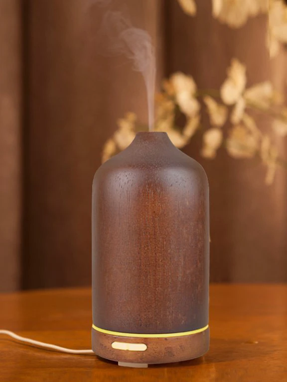 Aroma difuzér z přírodního bambusového dřeva • objem nádoby 100 ml • 7 barev podsvícení • LED světlo • doba provozu 4 hodiny • nastavení podsvícení a časování vypnutí a zapnutí • nastavitelný výstup mlhy • tichý provoz • Certifikace (ISO9001 CE ROHS FCC) • rozměry: 158 cm (výška) x 92 cm (průměr základny) • barva: tmavé dřevo