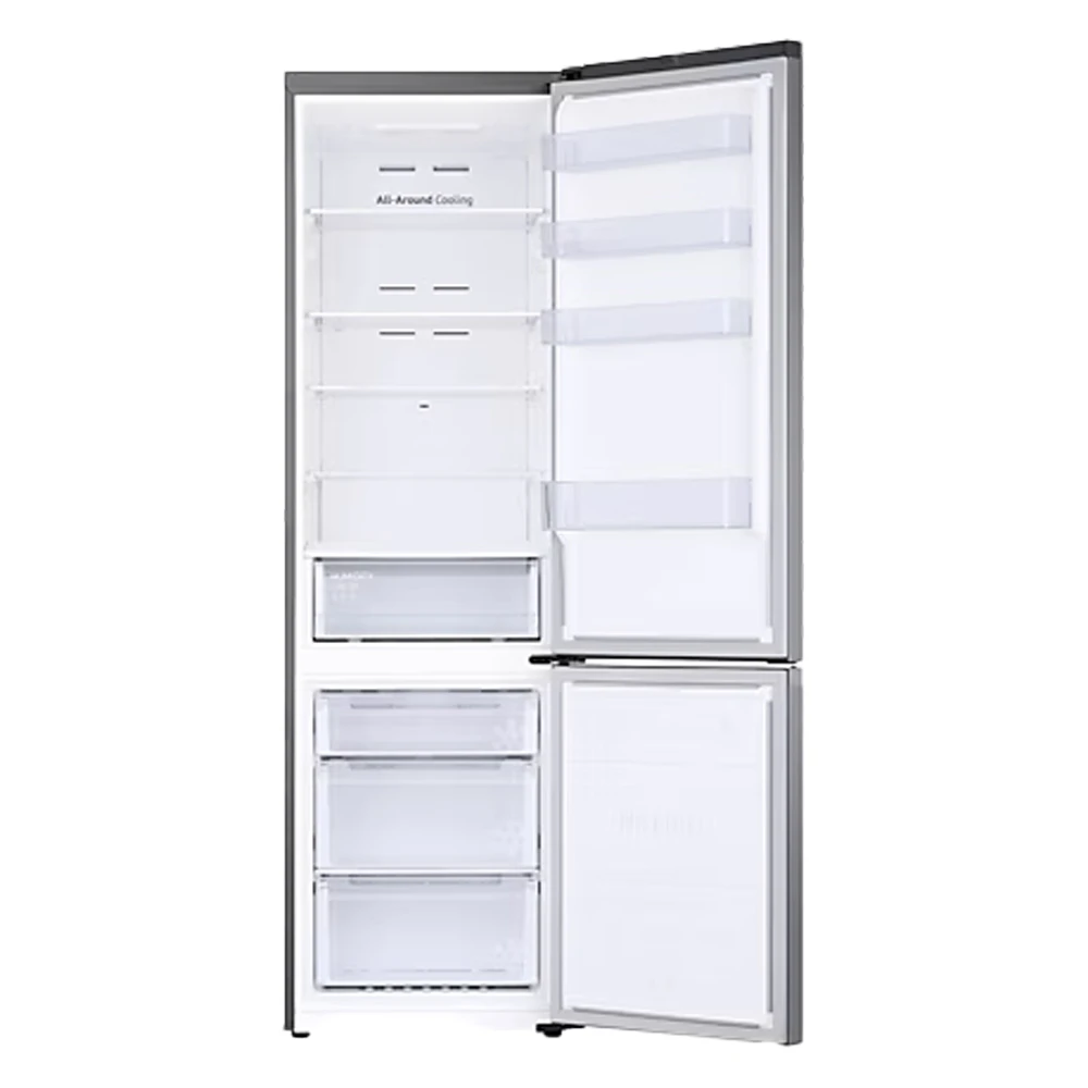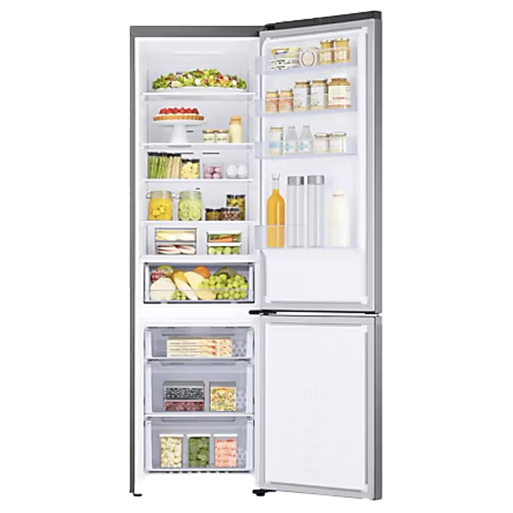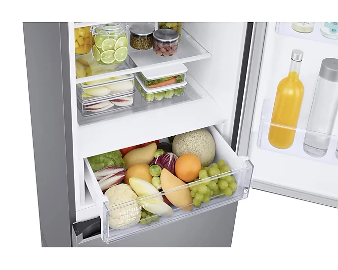 Chladnička s mrazákem • kapacita 390 l • režim AI Energy • technologie SpaceMax • systém All-Around Cooling • technologie No Frost • Box Optimal Fresh+ • zásuvka Humidity Fresh+ • funkce Power Cool a Power Freeze • širší hlubší koš na láhve Big Door Bin • digitální invertorový kompresor s 20 letou zárukou •