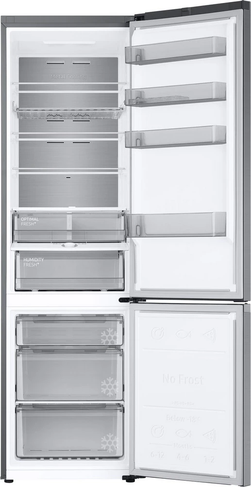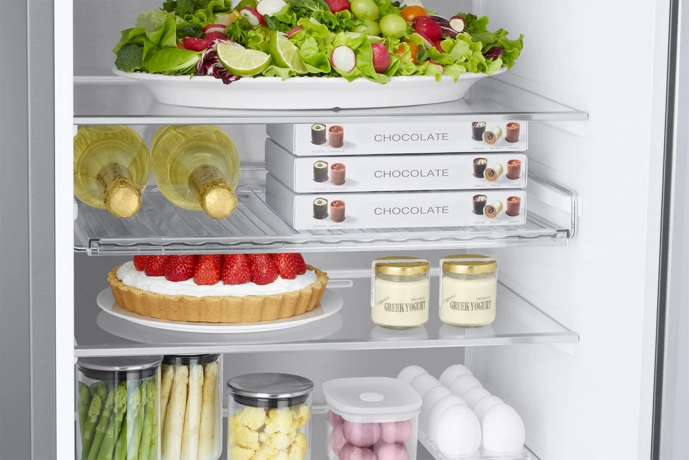 Kombinovaná lednice s mrazákem dole • en. třída C • objem 390 l (chladnička 276 l; mrazák 114 l) • Wi-Fi • platforma SmartThings • 20letá záruka na kompresor • True No Frost • SpaceMax • chlazení All-Around Cooling • kovová chladicí deska Metal Cooling • rychlé funkce Power Cool a Power Freeze • unikátní zásuvky Optimal Fresh+ a Humidity Fresh+ • zadní design Clean Back • zapuštěné dveře • LED osvětlení •klimatická třída: SN, N, ST, T • hlučnost: 35 dB • rozměry: 203 × 59,5 × 65,8 cm (v × š × h)
