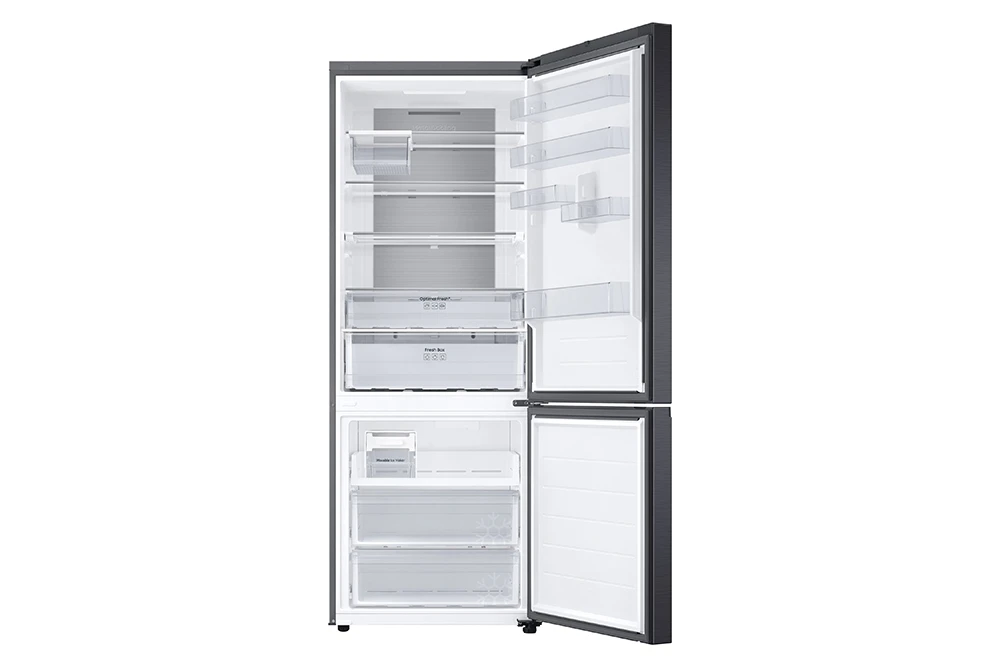Lednice s mrazákem dole • objem: 538 l (chladnička 370 l, mrazák 168 l) • en. třída: A • digitální invertorový kompresor s 20letou zárukou • Wi-Fi • SmartThings • True No Frost • SpaceMax • systémy Twin Cooling a All-Around Cooling • kovová chladicí deska Metal Cooling • funkce Power Cool/Power Freeze • AI Energy mód • výrobník ledu Twist Ice Maker • nastavitelné otevírání dvířek • klimatická třída: SN, N, ST, T • hlučnost: 34 dB • barva: černá
