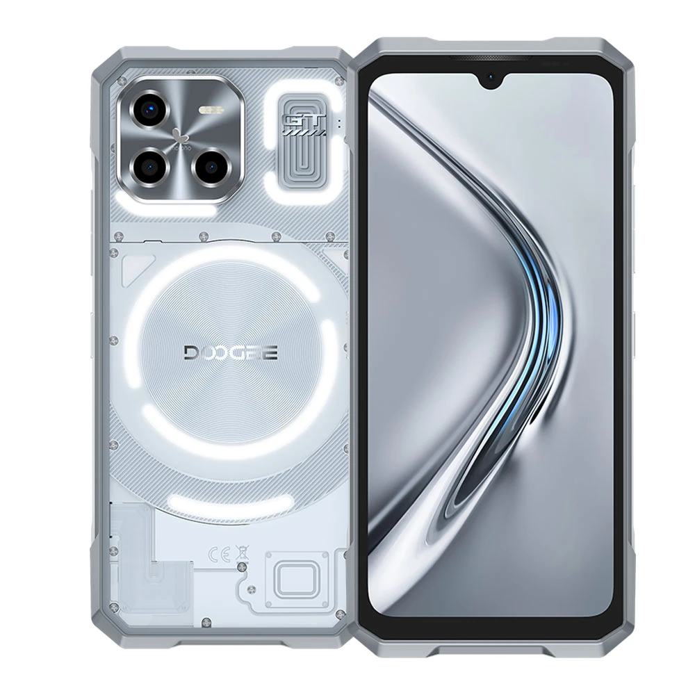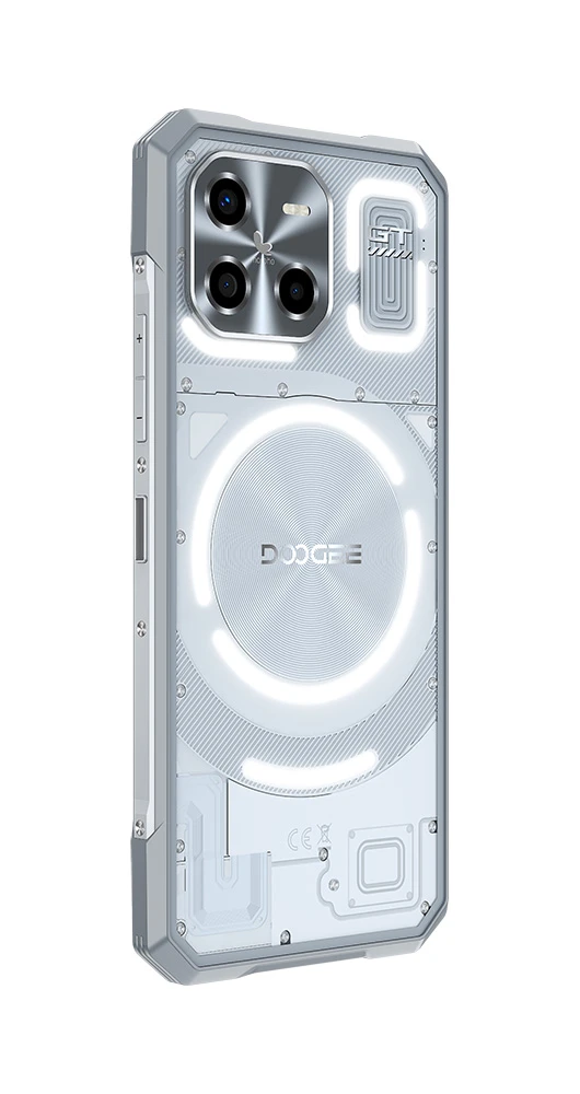 Odolný smartphone s 6,72" FHD+ IPS displejem (2400 ×1080 px 120Hz • Osmijádrový procesor Mediatek Dimensity 7300 • 16GB RAM • 512GB úložiště (microSD až 2 TB) • Svítící LED design na zadním krytu • Extra programovatelné tlačítko • Zadní fotoaparát 100MPx (F/1,8) + 5MPx wide (F/1,8)• přední 32MPx fotoap. (F/2,25) • Wi-Fi 6 • Bluetooth 5.2 • NFC • GPS se 4 satelity • USB-C • Dual SIM • IP68 & IP69K • MIL-STD-810H • Baterie 5500mAh s 33W rychlonabíjením • Android 14 • barva: stříbrná