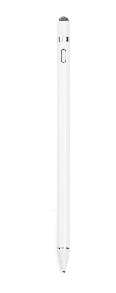 Stylus pro tablety • 1,5 mm kovový hrot LED • kontrolka • výdrž na jedno nabití až 30 hod • doba nabíjení 80 - 100mm • automatické vypnutí po 5 minutách nečinnosti • magnetický uzávěr pera • Micro USB nabíjecí konektor • barva: bílá