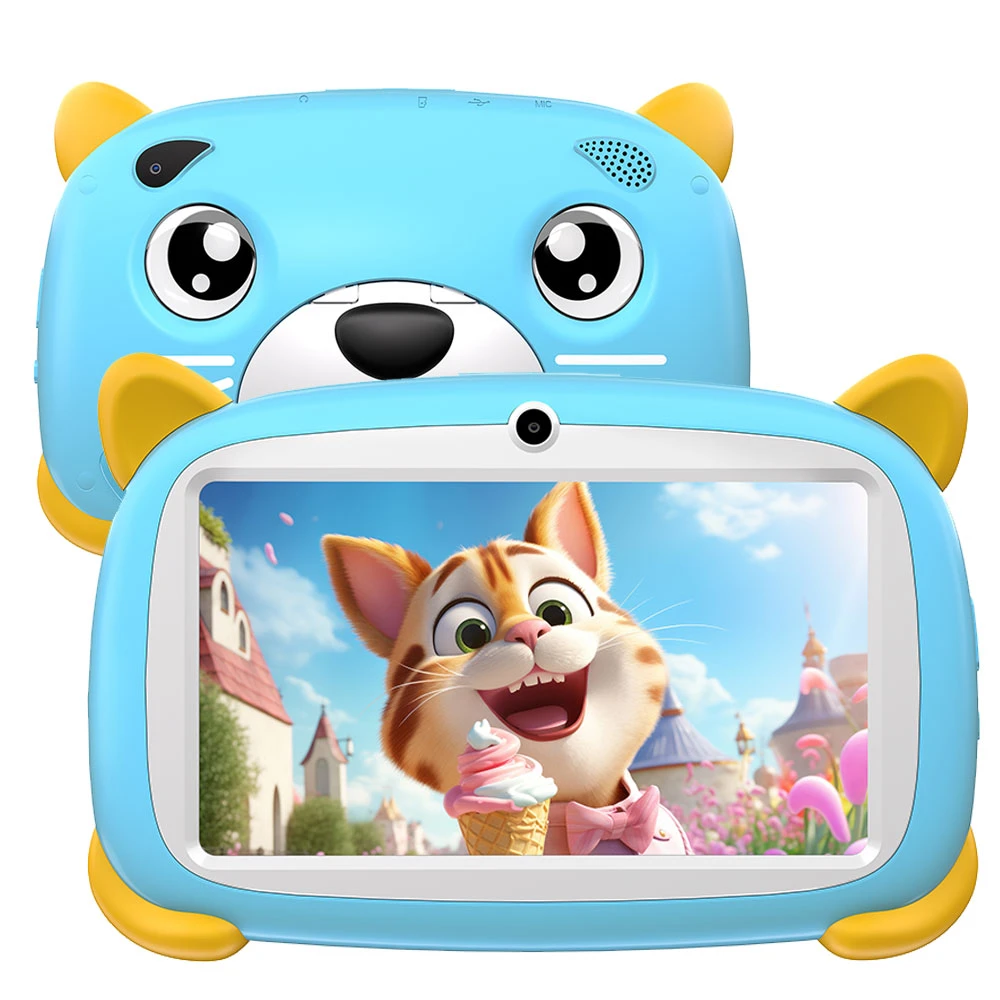 Dětský tablet se 7" HD IPS displejem o rozlišení 1 024 × 600 px • certifikace TÜV SÜD Low Blue Light • antialergické pouzdro s multifunkčním stojánkem • 4jádrový procesor MediaTek MT6580 • 2GB RAM • 32GB vnitřní úložiště (microSD až 1 TB) • zadní 2MPx fotoaparát • přední 0,3MPx kamera • Wi-Fi • Bluetooth 4.0 • 3.5mm jack • USB-C • 3 400mAh baterie • Android 10 • Kids World – pestrá škála zábavních, vzdělávacích a kreativních aplikací a her • barva: modrá