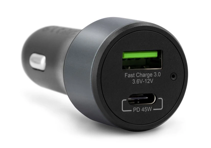 Nová generace duálního car chargeru, který nenechá vaše zařízení bez energie ani na dlouhých cestách. Je vybaven USB-A 3.0 portem s podporou fast charge technologie a USB-C portem s podporou Power Delivery 3.0 s maximálním výstupním výkonem 45 W. Díky tomu můžete vzít svůj MacBook nebo jiný USB-C laptop na cesty a nemusíte se starat o výdrž baterie. Nabíječka je vybavena přepěťovou ochranou a ochranou proti přebíjení.