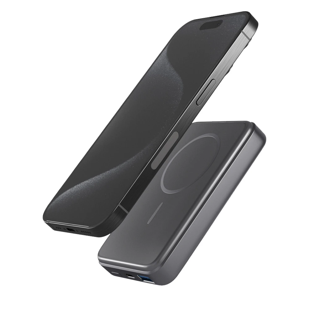 Magsafe kompatibilní powerbanka s kapacitou 10000 mAh • Hliníkový povrch • Podporuje až 15W bezdrátové nabíjení (7,5W pro iPhone) • Dva výstupy pro standardní kabelové nabíjení • Výstup USB-C s podporou až 20W Power Delivery • Výstup USB-A s maximálním výkonem 22,5 W • LED stav baterie • USB-C vstup DC 5 V/3 A, 9 V/2 A (18 W max.) • USB-C výstup DC 5 V/3 A, 9 V/2,22 A, 12 V/1,67 A (20 W max.) • USB-A výstup DC 4,5 V/5 A, 5 V/3 A, 9 V/2 A, 12 V/1,5 A (22,5 W) • Hmotnost 191g