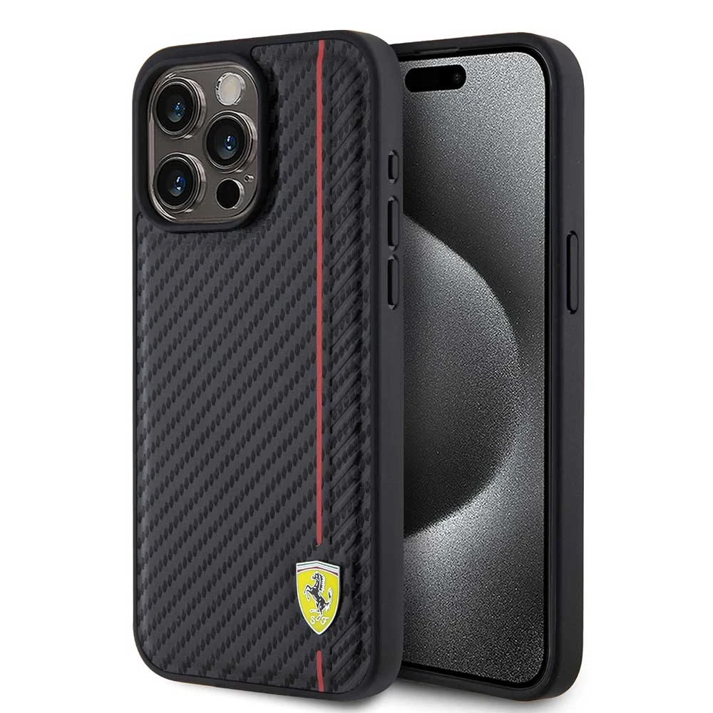 Ferrari PU Leather Carbon Red Line iPh. 15 Pro Max