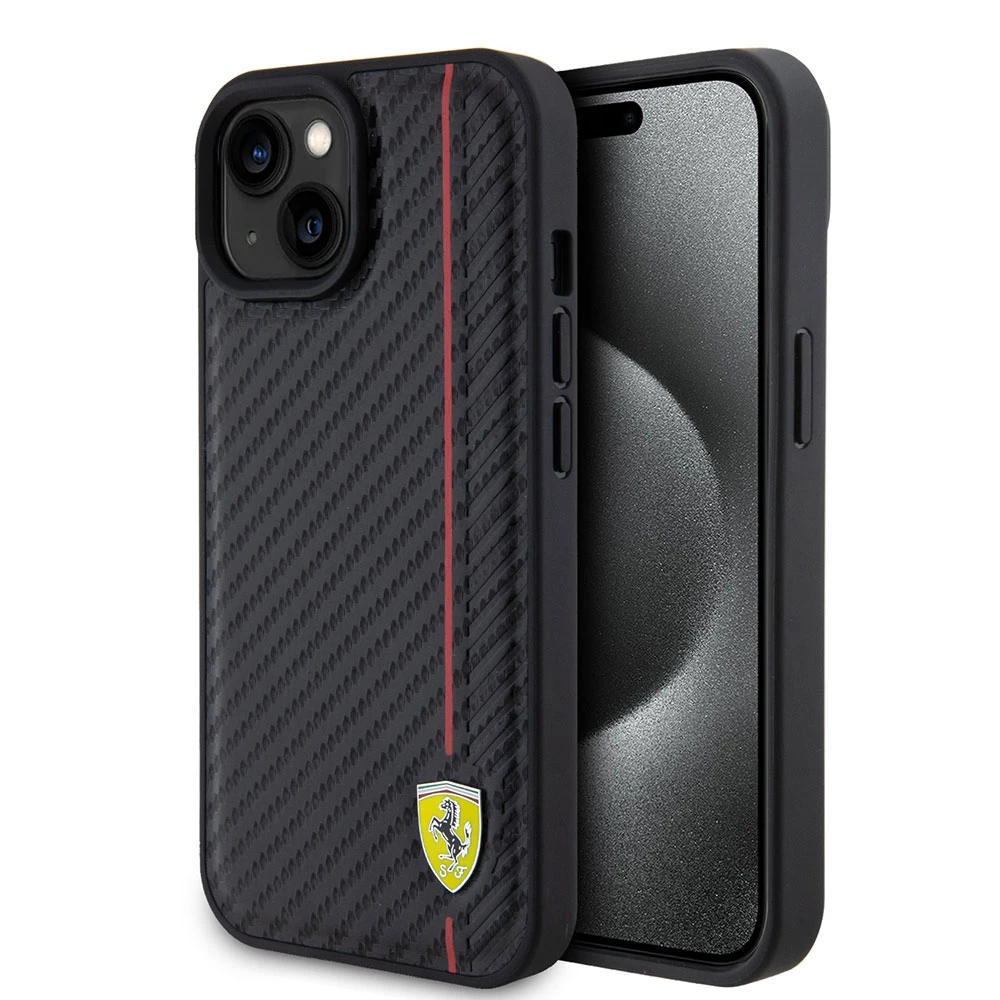 Ferrari PU Leather Carbon Red Line kryt iPhone 15