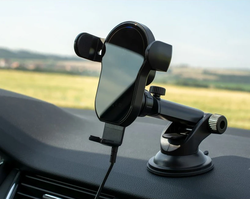 • univerzální držák s bezdrátovým nabíjením • na palubní desku nebo čelní sklo • vhodný pro telefony o šířce 6 - 8cm • automatické sevření kleští držáku po přiložení telefonu • rychlé nabíjení Rapid Charge s výkonem 15W • podpora Quick Charge 3.0 + Qi nabíjení • ideální pro nabíjení moderních smartphonů • vysouvací rameno s nastavitelnou délkou • opakovaně použitelný přísavný podstavec • otočný kloub pro nastavení do ideálního pozorovacího úhlu • kompatibilní s většinou krytů a pouzder