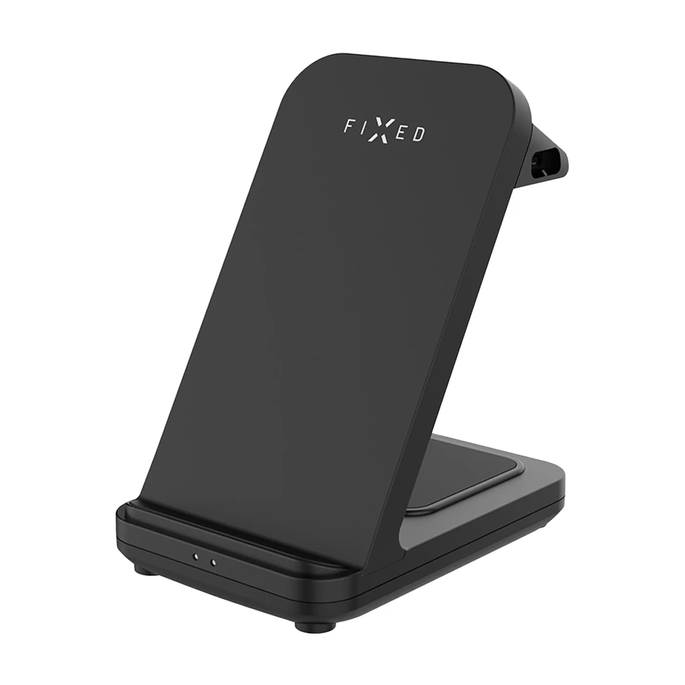 Bezdrátový stojánek FIXED Powerstation Uni nabízí pohodlné nabíjení dvou zařízení zároveň s možností rozšíření o nabíjecí plochu pro chytré hodinky • Hlavní plocha podporuje rychlé nabíjení telefonů díky výkonu až 15 W a kombinované sítě je možné umístit jak v horizontální, tak vertikální pozici • Druhá plocha s výkonem až 5 W • Stojánek je vybaven USB-C portem pro rozšíření o FIXED nabíjecí adaptér pro chytré hodinky Apple Watch, Garmin nebo Samsung Galaxy Watch