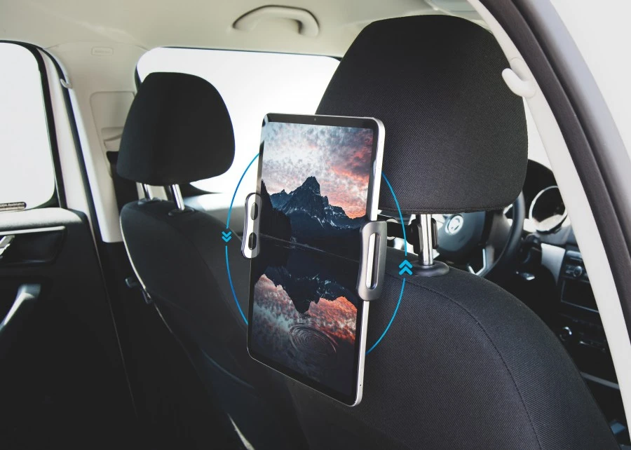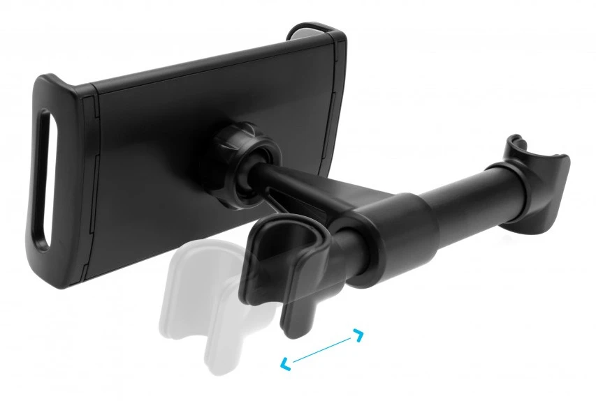 Univerzální držák do opěrky hlavy v automobilu, ideální pro sledování filmů i jiných aplikací, vhodné pro tablety o velikosti 7 - 13", šířka rozevíracích kleští 12,5 - 20,5 cm, možnost otáčení až o 360°, pevné a stabilní uchycení tabletu.