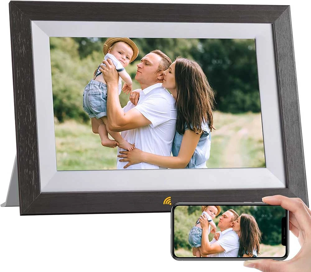 Digitální fotorámeček • 10" IPS dotykový displej (1280x800) • 32GB paměť + 10GB cloud zdarma • Reproduktory • Podpora SD (128GB) a USB (256GB) • Podpora video formátů (MP4, MKV, MOV) a hudebního přehrávání (MP3, OGG, AAC, MP3, FLAC, WAV) • G-senzor • Automatická synchronizace času, kalendáře, hodin a počasí • USB • Jack 3,5mm • Wi-Fi • Pozorovací úhel 178° pro konzistentní barvy • Bezplatná mobilní aplikace KODAK Digital Frame • barva: hnědá (dřevo)