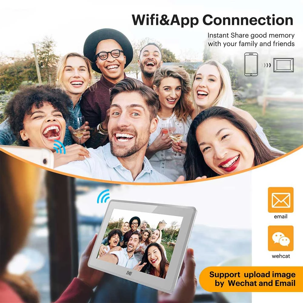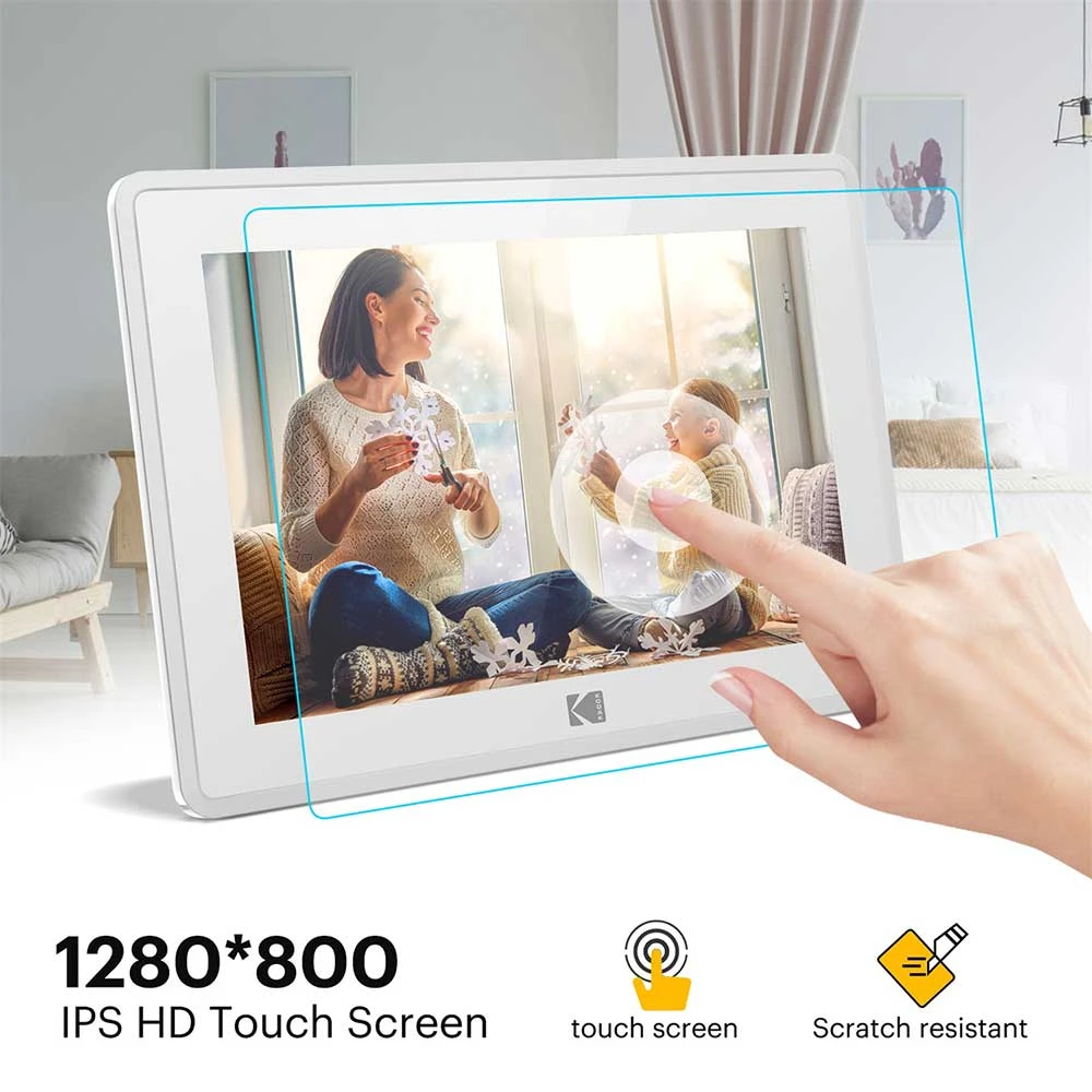 Digitální fotorámeček • 10,1" IPS dotykový displej s rozlišením 1280 × 800 px • široké pozorovací úhly 178° • vestavěná paměť 16 GB + možnost rozšíření (USB / SD karta) • bezdrátové sdílení fotografií a videí přes mobilní aplikaci • podpora formátů foto (JPEG, PNG), video (MP4, MKV, MOV) a hudby • rotace obrazu na výšku/šířku • funkce: kalendář, hodiny, budík, počasí • cloudové úložiště 10 GB • konektivita: Wi-Fi/USB-C • napájení přes adaptér (5 V / 2 A)