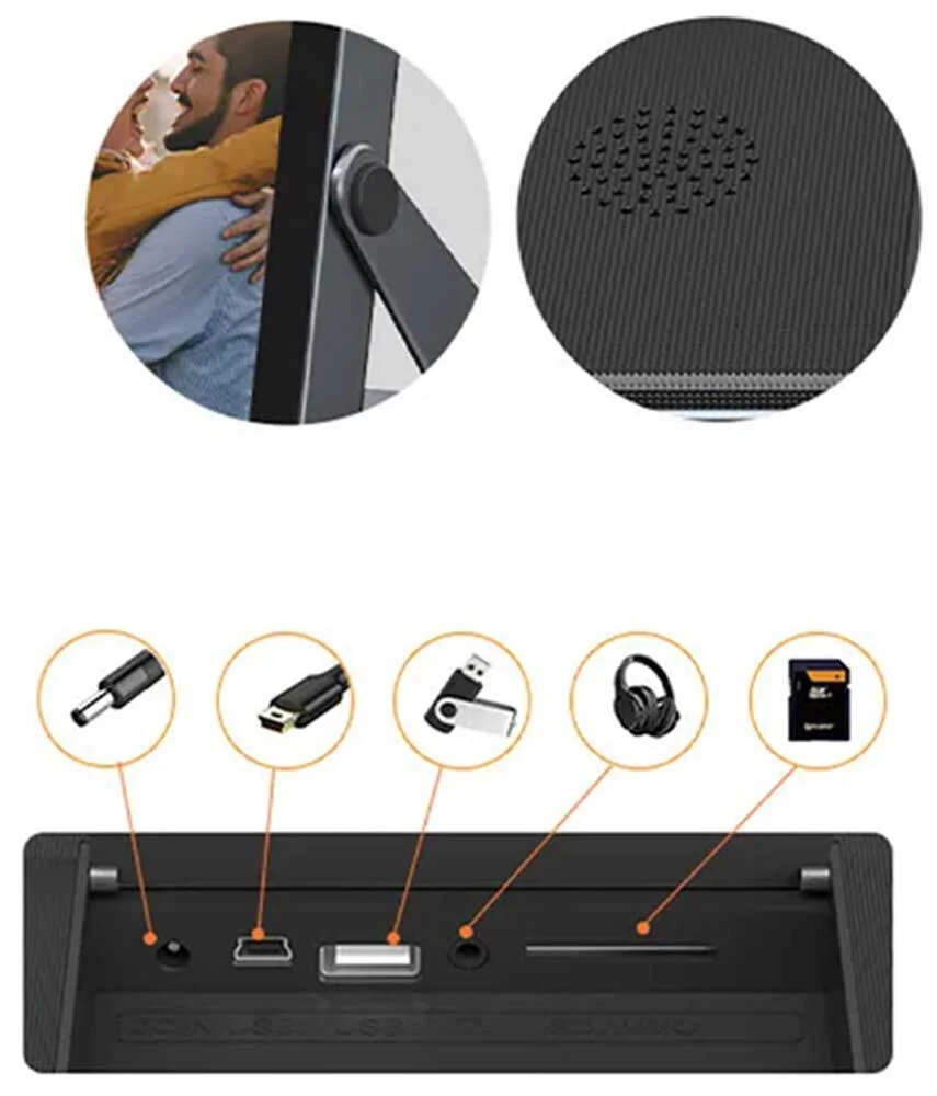 Digitální fotorámeček • 10,1" IPS dotykový displej s rozlišením 1280 × 800 px • široké pozorovací úhly 178° • vestavěná paměť 32 GB + rozšíření přes SD (128 GB), USB (256 GB) • sdílení fotografií a videí přes mobilní aplikaci • 4jádrový procesor + 1 GB RAM • OS Android 8.1 • foto (JPEG/PNG/GIF), video (MP4/MKV/AVI) hudba • stereo reproduktory • automatická rotace obrazu (G-sensor) • doplňkové funkce: kalendář/hodiny/počasí • cloudové úložiště 10 GB • konektivita: USB-C/USB-A/SD • vestavěná bat.