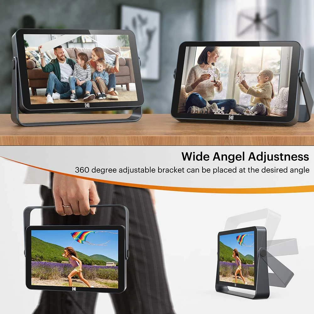 Digitální fotorámeček • 10,1" IPS dotykový displej s rozlišením 1280 × 800 px • široké pozorovací úhly 178° • vestavěná paměť 32 GB + rozšíření přes SD (128 GB), USB (256 GB) • sdílení fotografií a videí přes mobilní aplikaci • 4jádrový procesor + 1 GB RAM • OS Android 8.1 • foto (JPEG/PNG/GIF), video (MP4/MKV/AVI) hudba • stereo reproduktory • automatická rotace obrazu (G-sensor) • doplňkové funkce: kalendář/hodiny/počasí • cloudové úložiště 10 GB • konektivita: USB-C/USB-A/SD • vestavěná bat.