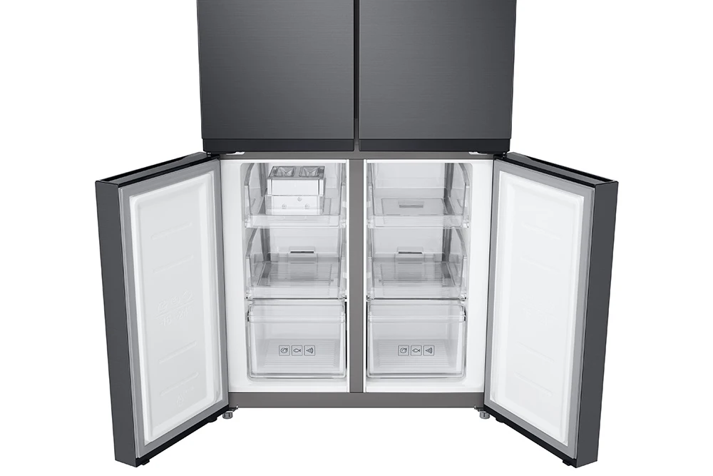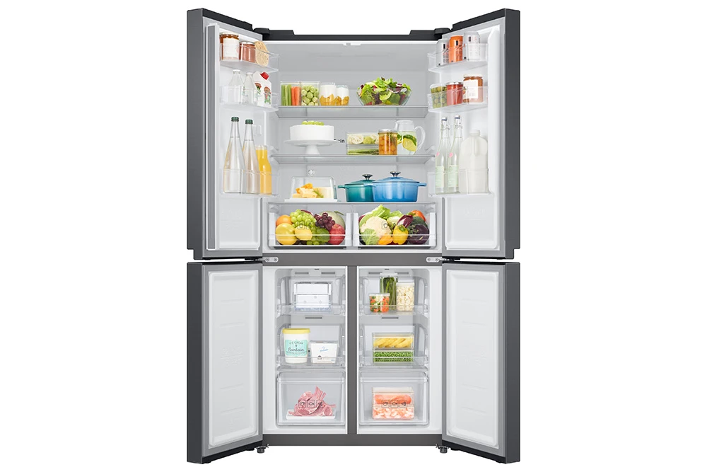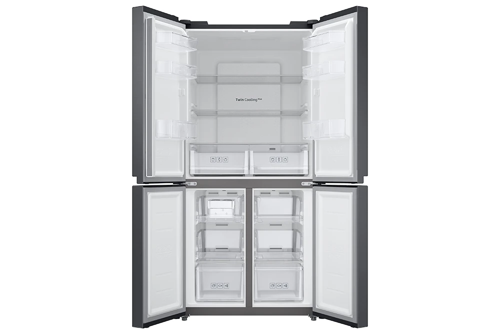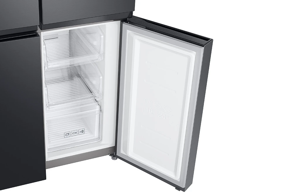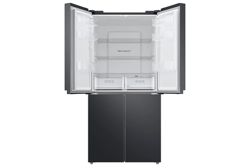 French Door chladnička • energetická třída E (roční spotřeba energie 298 kWh) • kapacita 488 litrů (329 l chladnička + 159 l mrazák) • systém chlazení Twin Cooling Plus • technologie No Frost • funkce pro rychlé chlazení a mrazení • deodorizér • vnější LED displej • 4 police a 2 přihrádky v mrazáku • 3 police a 6 přihrádek ve dvířkách + 2 zásuvky na zeleninu v chladničce • výrobník ledu Movable Ice Maker • hlučnost 41 dBA • WiFi • aplikace SmartThings • výška 179,3 cm