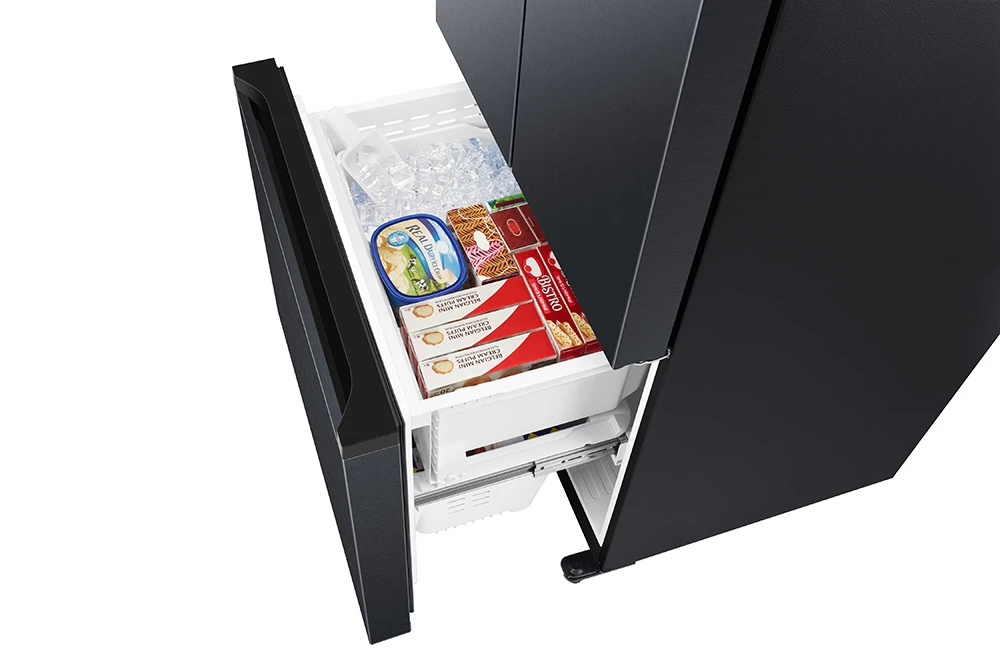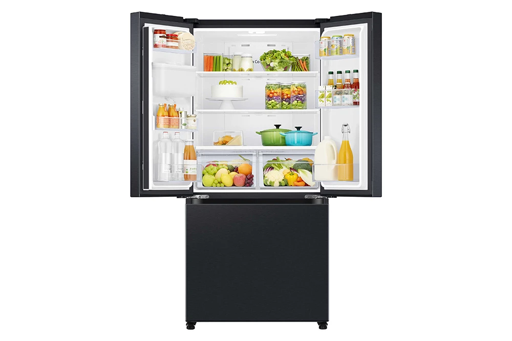 Americká chladnička • energetická třída E • celkový objem 495 l (chladnička 330 l; mrazák 165 l) • beznámrazová technologie True No Frost • řešení Twin Cooling Plus • výrobník ledu • dispenzor vody a ledu • 8kg/24h mrazící výkon • 40 dBA hlučnost • funkce rychlé chlazení a mrazení • smart funkce SmartThings Energy a Home Care a Food • LED osvětlení • digitální invertorový motor s 20letou zárukou výrobce • barva: černá