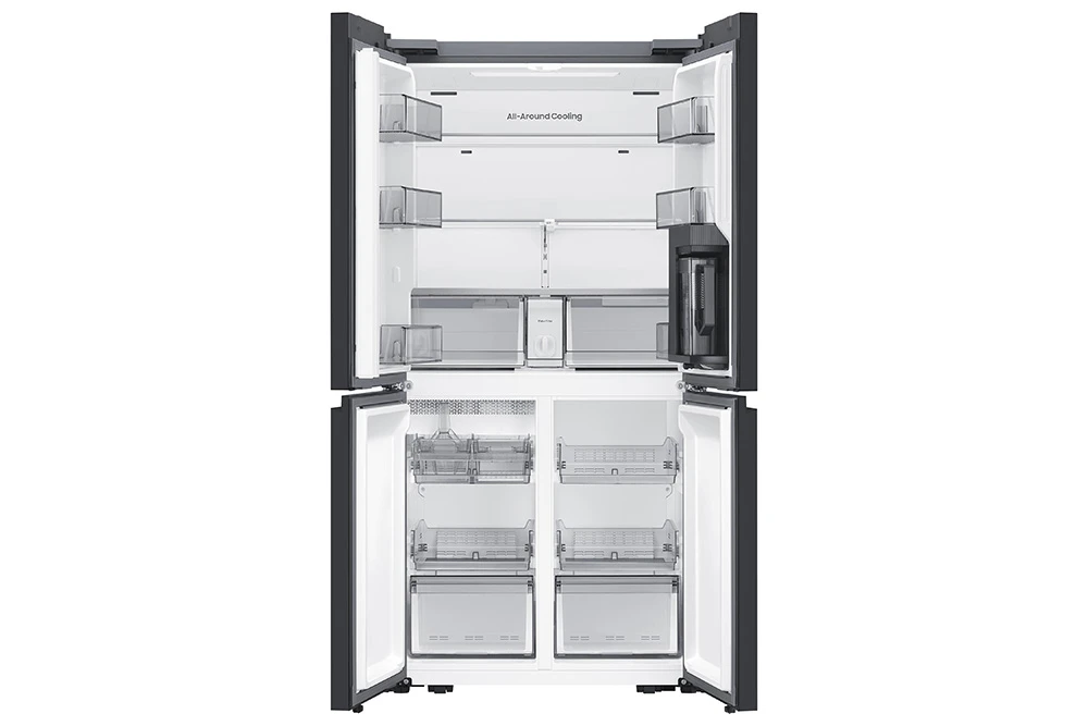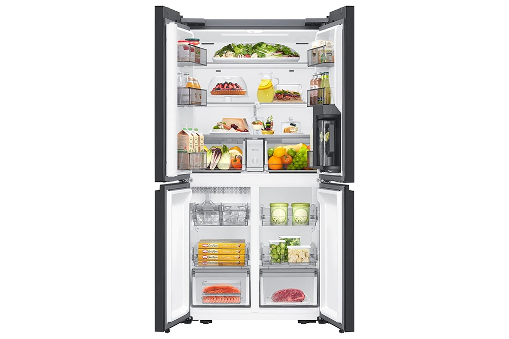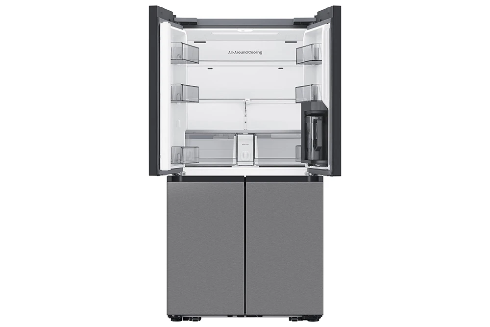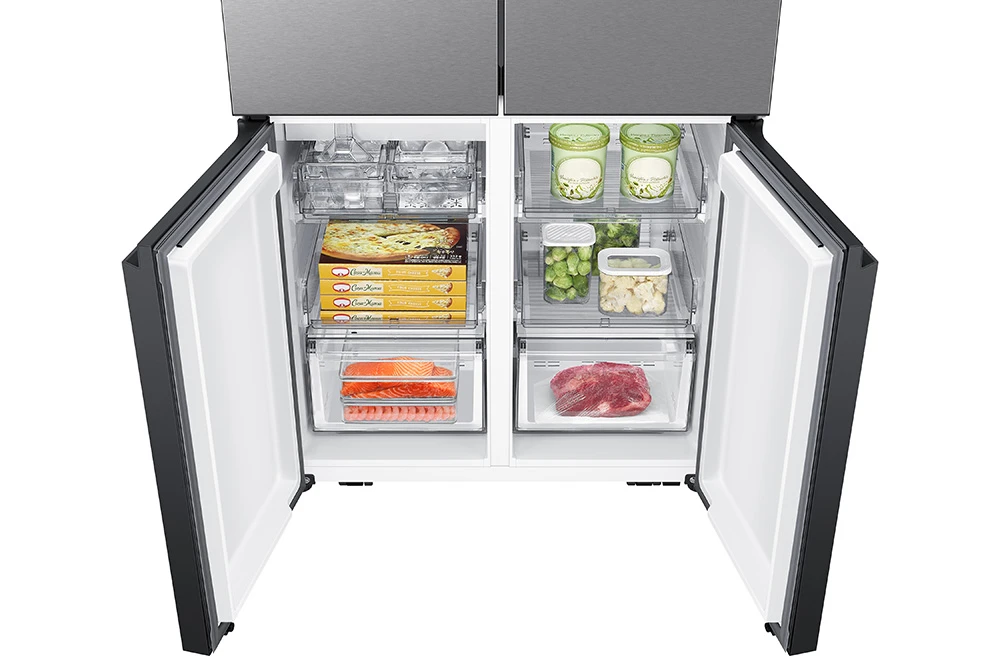 Energetická třída E, Kapacita 648 L (402 / 246), Mono Cooling, No Frost, Funkce rychlé chlazení a mrazení, Automaticky plnící nádoba na vodu, Připojení na vodu, displej 2,25" LCD, 4 police a 2 přihrádky mrazáku, 4 police chladničky, hlučnost 35 dBA, mrazící kapacita 12 kg/24 hodin, Dual Ice Maker, spotřeba 351 kWh/ročně, SMART, WiFi, AI, SmartThings aplikace, výška 185 cm, barva stříbrná/nerez